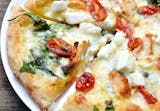 Sundried tomatoes, goat cheese, fresh garlic and basil, with mozzarella cheese.