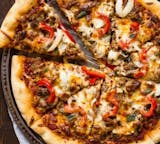 The all-time favorite toppings on one pizza – pepperoni, sausage, mushrooms, onions, garlic, and green pepper.