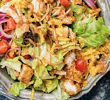 Chopped Romaine lettuce, diced BBQ chicken breast, mozzarella cheese, diced Roma tomatoes, corn, red peppers, crispy onion, and cilantro, tossed with our BBQ vinaigrette dressing.