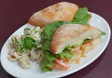 Sautéed shrimp, lettuce, tomatoes, avocado, and provolone cheese. Served on Italian ciabatta bread and side of pasta salad.