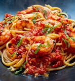 Linguini tossed with sauteed shrimp in a zesty tomato, roasted pepper, and cilantro sauce.